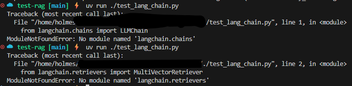 from langchain.chains import LLMChainfrom langchain.retrievers import MultiVectorRetriever発生した問題