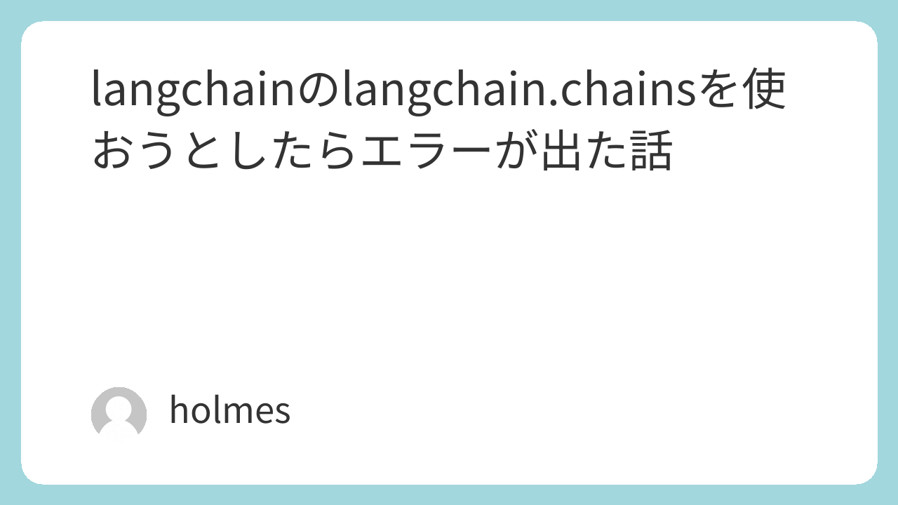 from langchain.chains import LLMChainfrom langchain.retrievers import MultiVectorRetriever発生した問題
